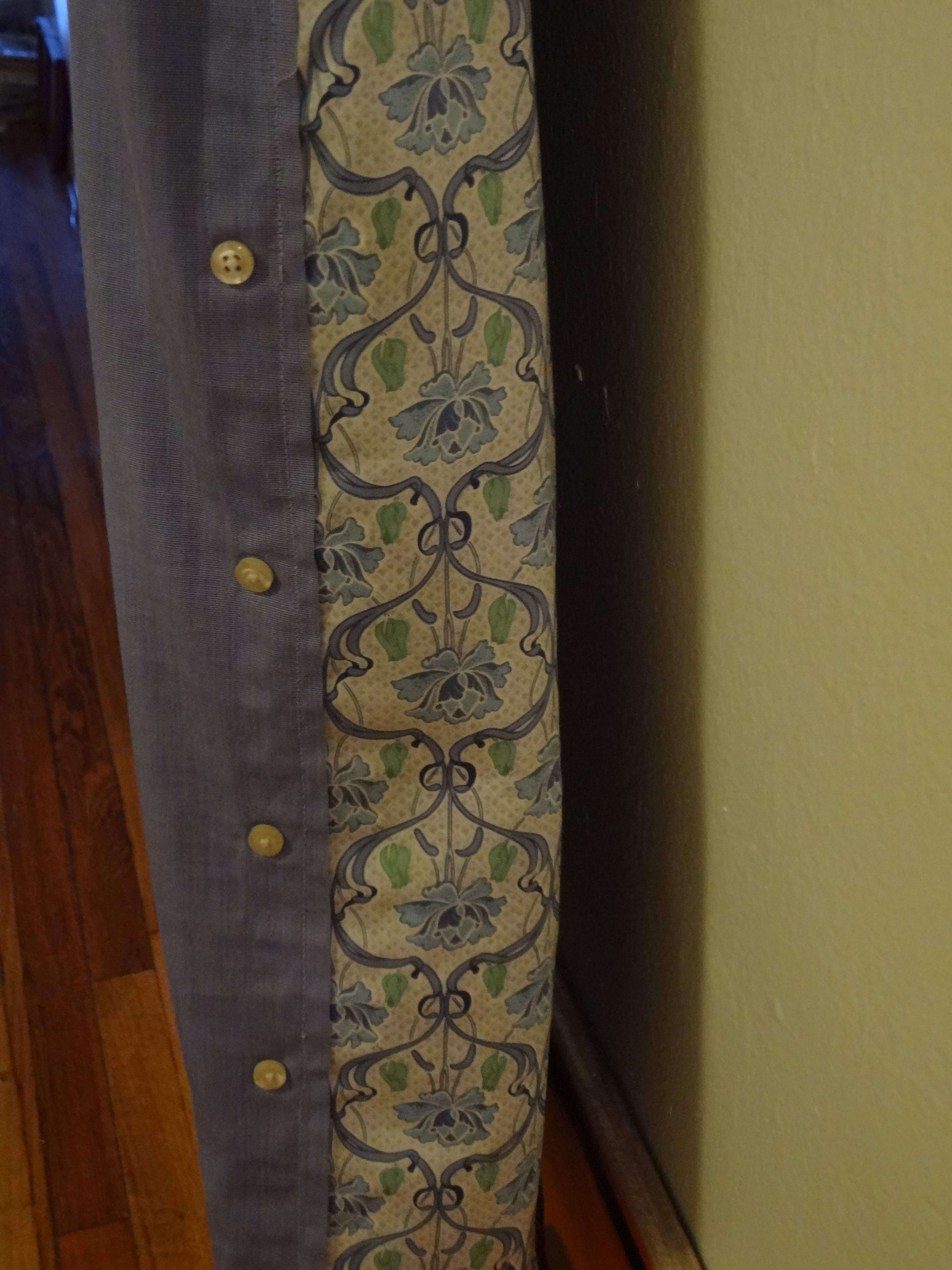 I’d really like to make a gown out of men’s shirts. I don’t have a long, flowing gown and it would be fun to create a fantasy sort of gown that I could wear, even if it just around the apartment!